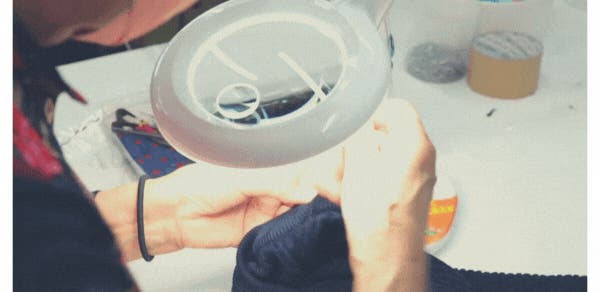日本の職人ならではの器用さと繊細さで裁断した生地を微調整しながら、丁寧にミシンで縫い上げています。