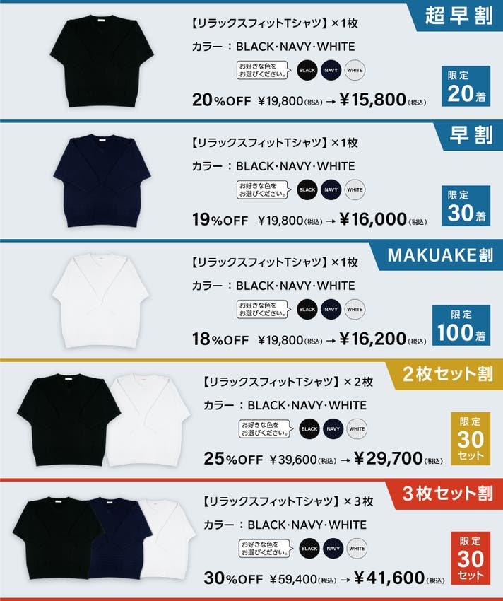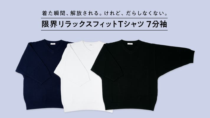 今回のプロジェクトは『限界リラックスフィットTシャツ』を多角的に見直し、春から秋までロングシーズンで使えるスタンダードスタイルとしてご提案する「7分袖」バージョンです。ぜひ応援購入を検討頂ければ幸いです。