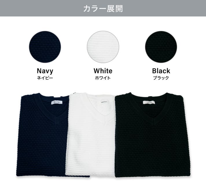 カラーもシンプルな単色でボトムや他のファッションアイテムとコーディネートしやすいブラック、ネイビー、ホワイトの3色をご用意。