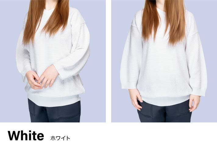 生地の凹凸により肌に触れる面積が少なく、汗ばむ時期でも肌にまとわり付かずサラっとした着心地。