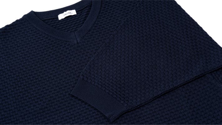 ニットは糸でループを作り、そのループにまた糸をくぐらせてループを作ることを繰り返すことにより、遊びが大きく、伸縮性が高いのが特徴。そのため体の動きの邪魔をしません。