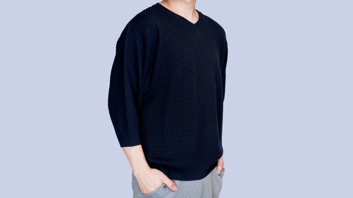 - 信頼の百貨店アパレルメーカーが希少国産ニットでリラックスフィットの限界7分丈Tシャツに挑戦!