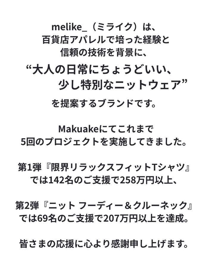 サイズや色はプロジェクト詳細のサイズ表や、着用モデルの画像からご確認を頂き、慎重にお選び頂ければ幸いです。なお、返品・交換の方法は、プロジェクトページ下部の「実行者に質問する」からお問い合わせください。