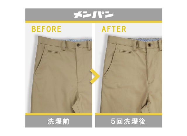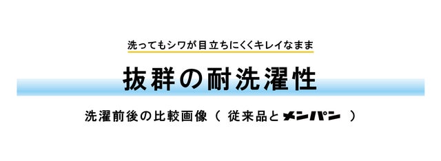 洗いっぱなしでもシワが残らずいつでも買った時と変わらない"キレイな顔"がキープできたらなんて"快適"だろうという思いから、今回私たちは"メンパン"を開発しました。