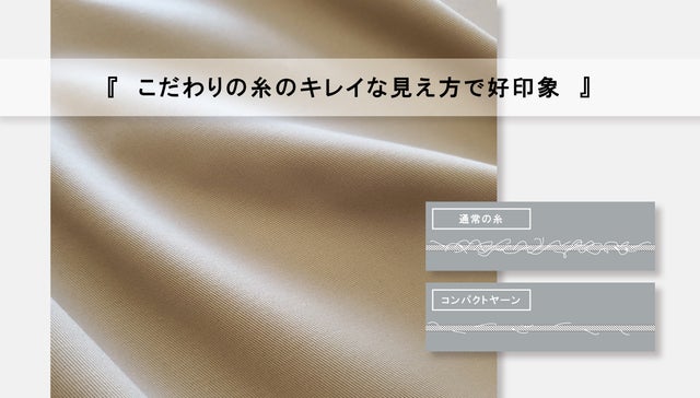 毛羽立ちの少ないこだわりの糸を採用することで生地のキレイな表面感を実現しました。