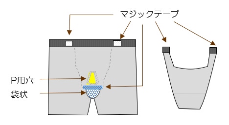 - 尿漏れ、尿取りパッドを利用している方向けの”男のパンツ”です。
