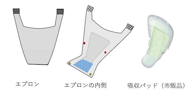 市販されている”吸収パッド”をエプロンの内側にセットできます。