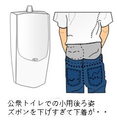 ・カンガルーポケット式の構造のため、小用ではズボンのファスナーを