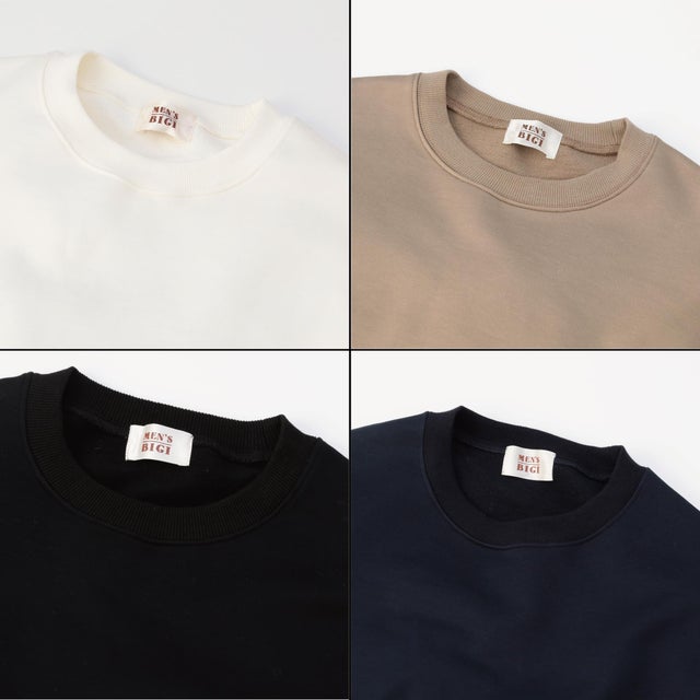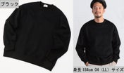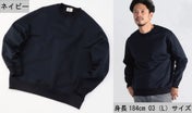 現代のトレンドを加味して、今回はオーバーサイズを採用。ゆったり目にして着丈は当時より5cm長く、裾口も広く設定しました。ラグランスリーブだった袖は『ドロップショルダーで太めな袖』にしました。落ち感のあるトレンドシルエットで1枚でも様になるデザインスウェットシャツとなっております。ご自宅での『おうち時間』でも快適に過ごせるスウェットシャツに仕上がっています。