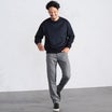 ▲スリムなパンツと合わせたメリハリのあるシンプルコーディネート。野暮になりがちなスウェットコーデも、スリムなパンツとの組み合わせでメリハリのあるスマートな印象になります。グレーパンツと合わせれば落ち着いたカラーリングで大人っぽい表情になります。《モデル伸長184cm 着用サイズ03(L)》