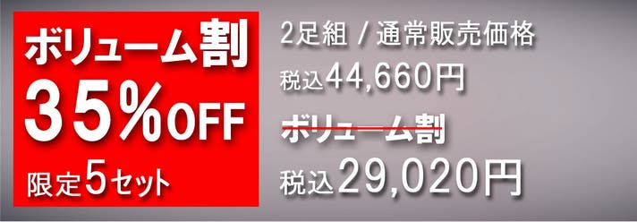 (内訳)通常販売予定価格<本体>1足(税込)21,780円×2足+送料(税込)1,100円=合計44,660円の35%OFF