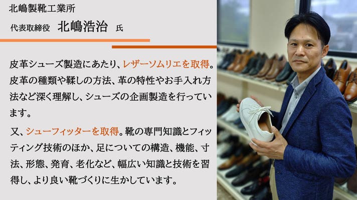 北嶋製靴工業所は、靴づくりの職人と技術を絶やすことが無いよう国産シューズの製造にこだわっています。技術は一度失われてしまえば元に戻ることはありません。それらを絶やすことが無いよう、技術継承し国産シューズを守っていきたいという思いがあります。