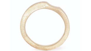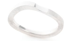 上下とも同じ角度で『ひねる』ことで、指にはめたときに、リングは指の上に斜めのラインを描きます。