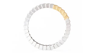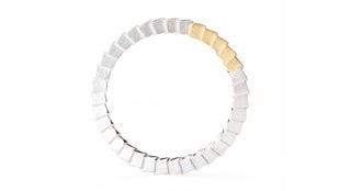 このリングは、正方形で囲まれた立方体(キューブ状)のかたちが、ある角度を保ってつながっています。