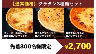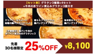 【セット割】で購入いただいた方には、丸ごと食べられる器パン牛肉の赤ワイン煮込みグラタンが特典に!