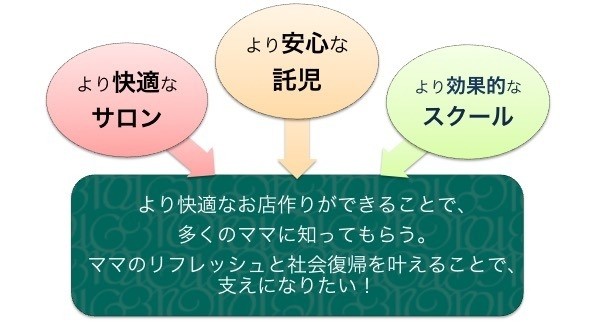 現代の女性が抱える、子育ての孤立化や、再就職の難しさをサポートし、時代にフィットした受け皿として新しい美容サロンの形を提案し続けます。