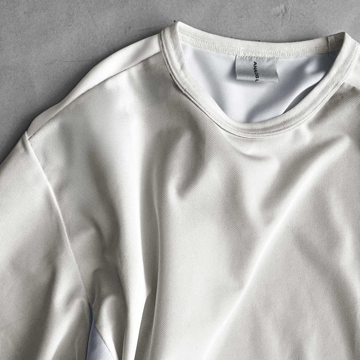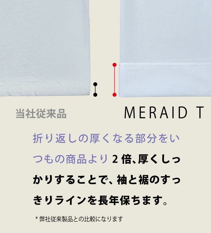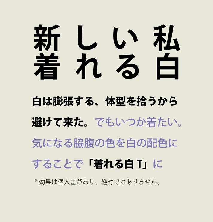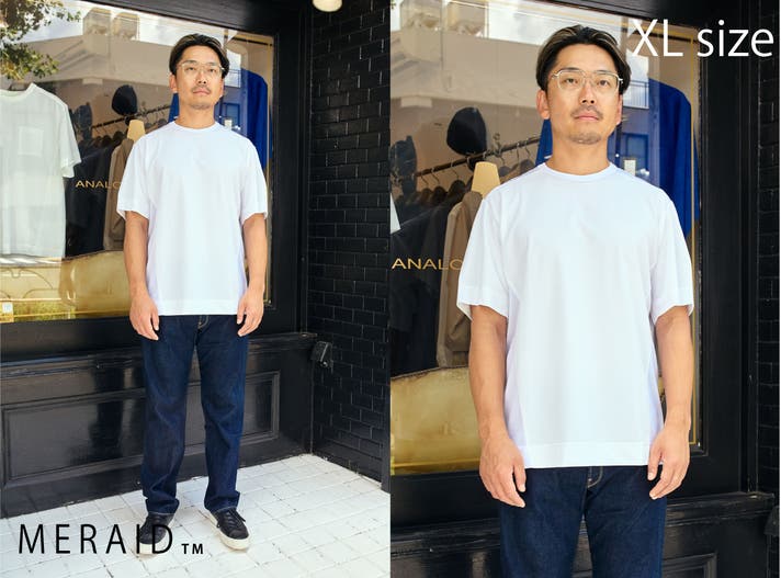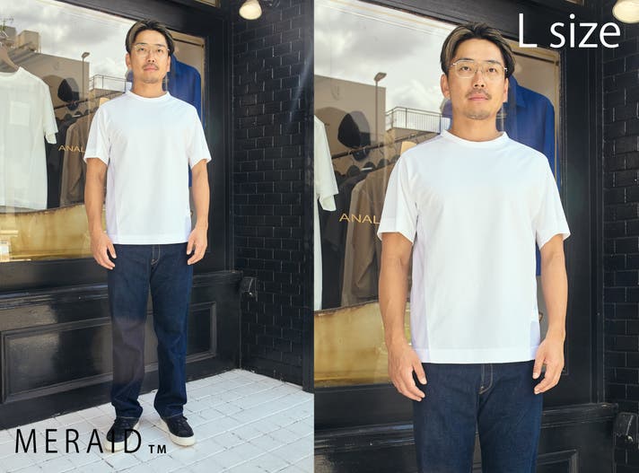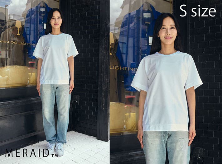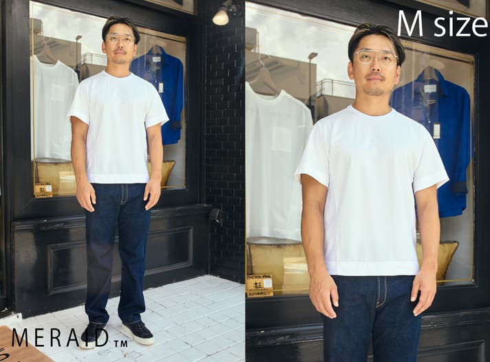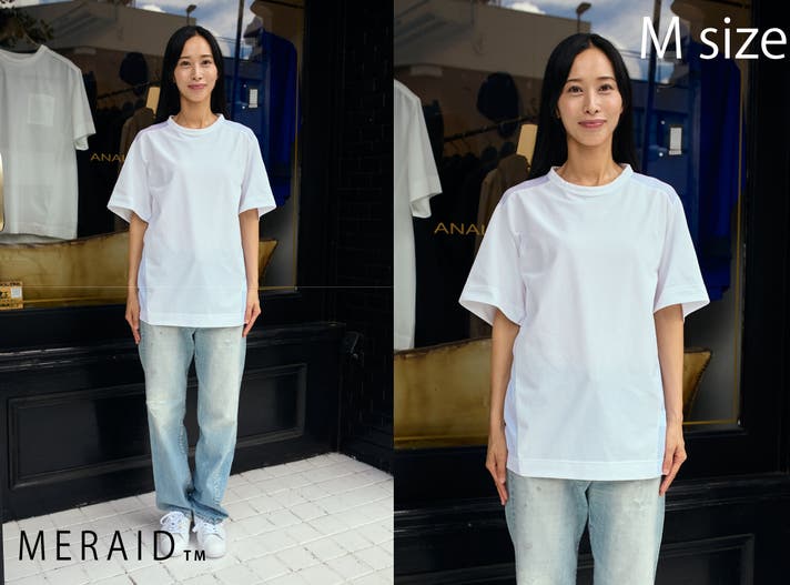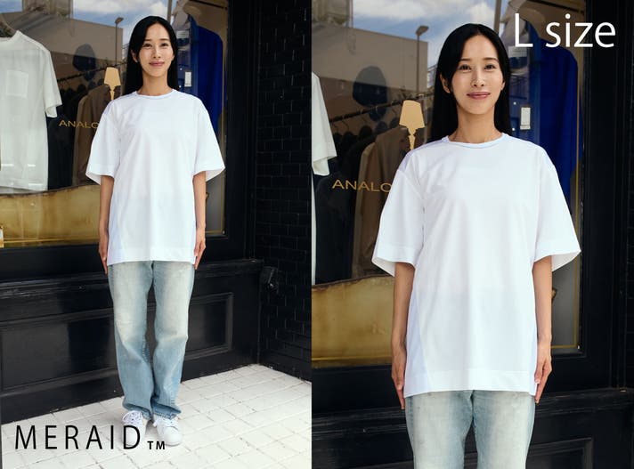 ジャストサイズでインナー使用でも、ゆったりサイズで1枚で着ることも出来ます。役割が違う2サイズを用途に合わせて着分けることでより長くキレイに愛用することが出来ます。ミライドTの特徴を活かしたスタイリングを提案いたします。