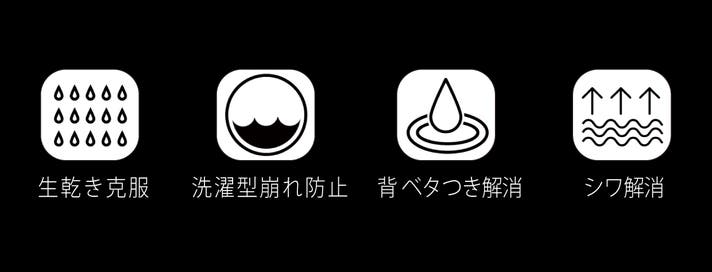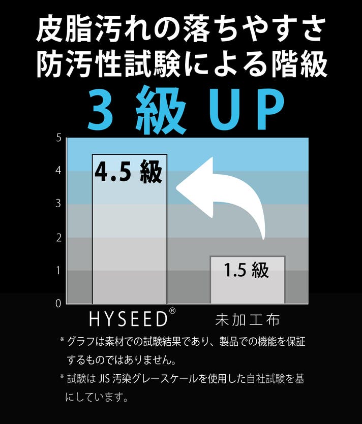 - 黄ばみを防ぐ皮脂防汚性4~5級、未加工布より3級向上する商標素材搭載