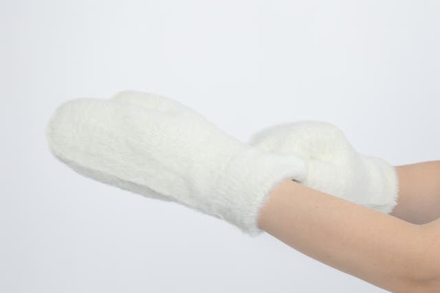 - ミンクタッチのふわふわとした糸とカシミアタッチの糸を使用し暖かくファッショナブルなミトンを開発