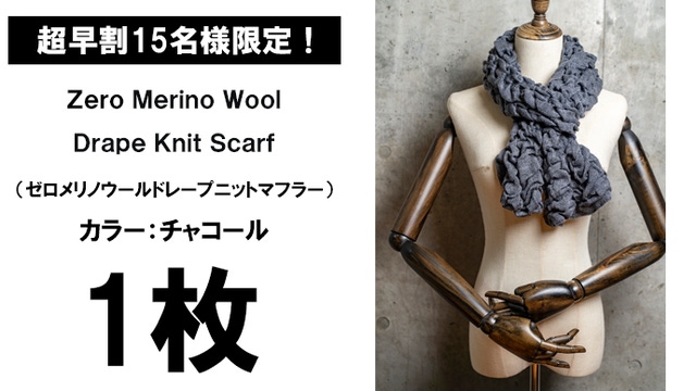 ③超早割15名様限定!Zero Merino Wool Drape Knit Scarf 1枚 ¥8,910(カラー:チャコール)