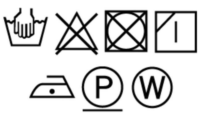 ex)40度以下の水温で洗濯機で弱い選択処理可、日陰に吊り干ししてください。