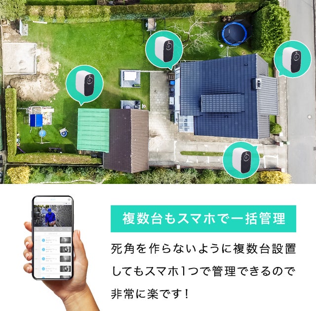 複数台のスマホで同じカメラを共有できます。また、複数台の本製品を同じスマホからそれぞれ別々に操作することができます。