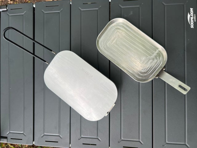 - お持ちのメスティンにマルチパンを被せてスタッキング収納できるから荷物がスッキリ。