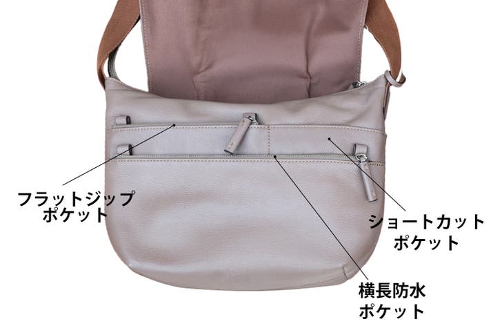ショルダーバッグのジッパーの開き方向を、お好みに合わせて左右どちらかを選べます。