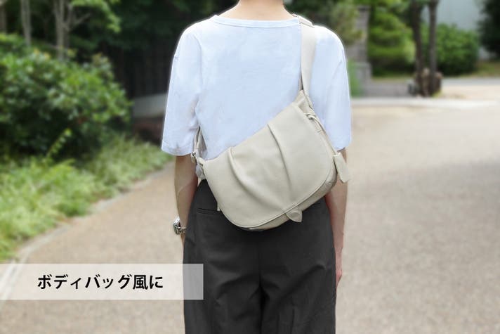 ボディーバッグ風の長さから、斜めがけまで、お好きな長さに調節できます。