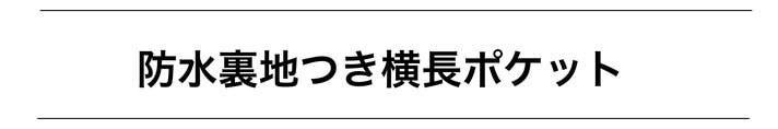 最下部の横長ポケットには防水裏地を採用し、他の荷物に水が染みにくい設計にしました。