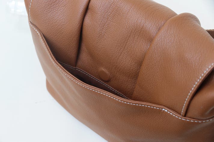 バッグに芯材を入れなかったり、裏地を省いて革一枚で仕立てたりすれば、コストを抑え、もっと安く商品をご提供することもできます。