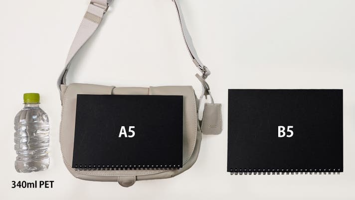 バッグのサイズはほぼB5。中に入れるならA5が最適となります。