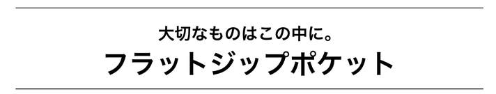 また、表に配置されたポケットの中で、フラットジップポケットはジッパー付きで、【ジッパーの持ち手が内側を向いている】ので防犯面も安心してお使いいただけるようにしています。