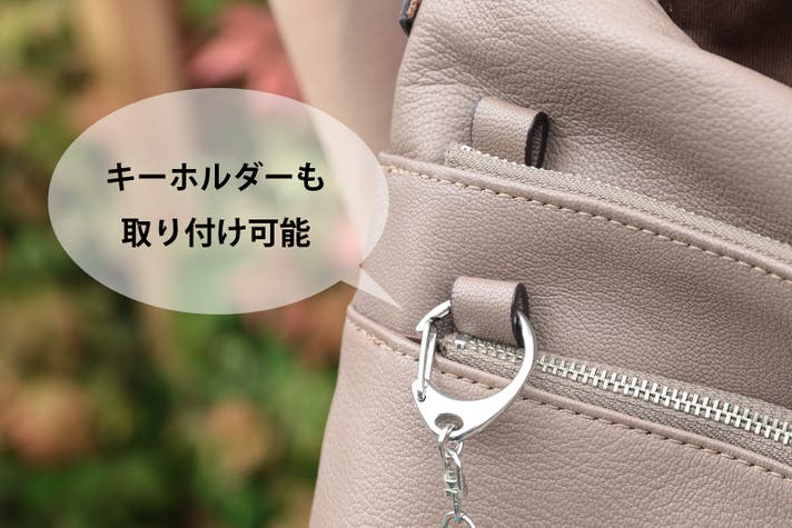 A. はい。同革のキーチャームが付属しておりますので、鍵をつけることができます。