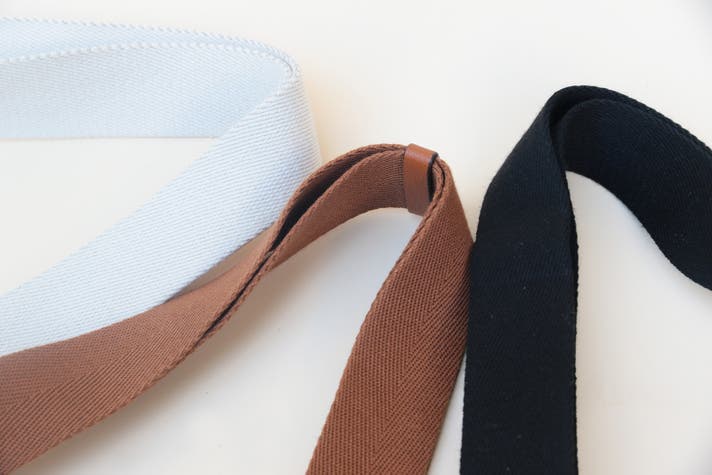 厚手でしっかりとしたコットン素材で、チューブ型に織られている「ホールガーメント」という製法を用いた、耐久性と衝撃吸収性に優れたストラップです。