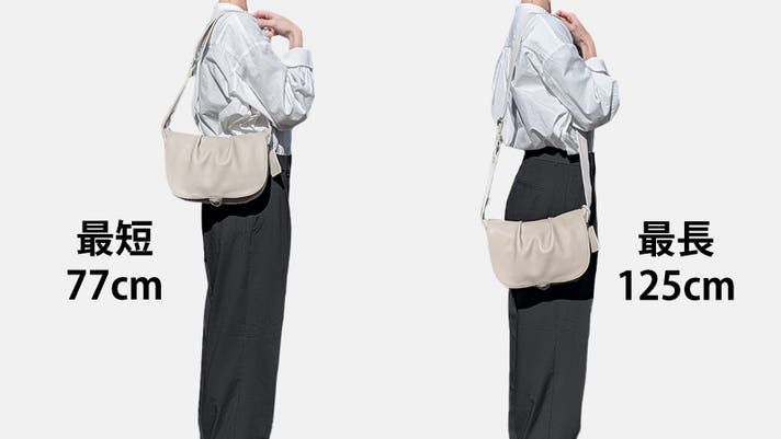 ショルダーストラップは77cm〜125cmまで長さ調節が可能。