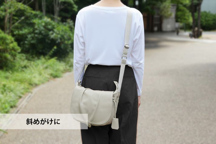 斜めがけはコートの上からでもゆったり掛けられる長さまで調節できます。