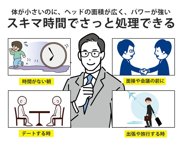 - ボディが小さいのに、ヘッドの面積が広く、毎朝の身支度にかける時間は短縮される!