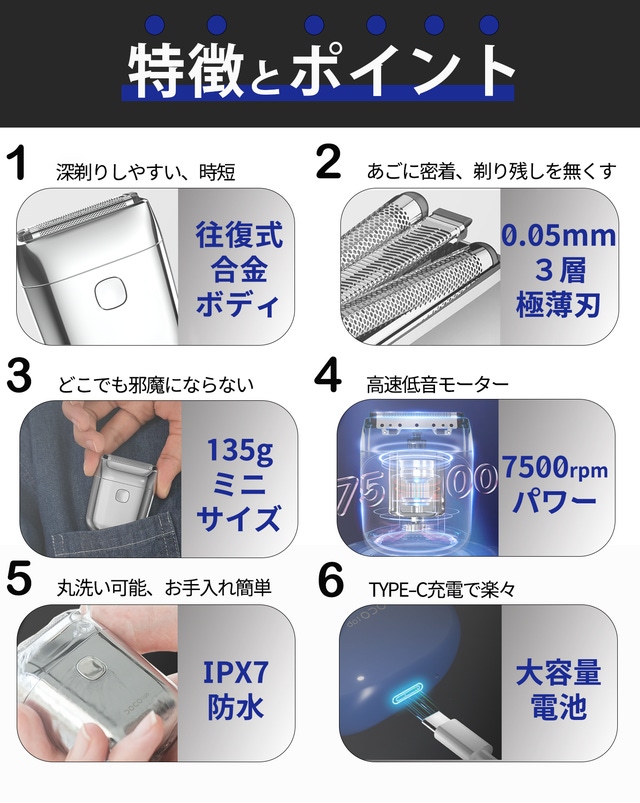 今回の「超小型往復式電動シェーバー」は超軽量・超小型、どこでも使用可能です。往復式なので、鋭い切れ味で深剃りしやすく、スムーズにシェービングできます。まさに実用性とデザイン性を兼ね揃えた逸品です。忙しい会社員にとっては最適な製品と思い、輸入しようと思いました。
