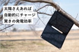 「ペーパー型太陽電池 MS001」は太陽さえあればコンセントはいりません、どこでも充電ができちゃいます。