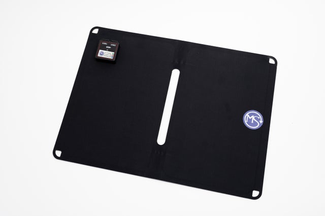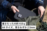 メタルソリューションズはA4サイズ、パネル厚約2.5mm、重さ約410gのソーラーパネルを実現しました。
