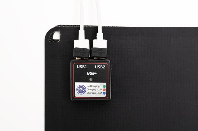 「ペーパー型太陽電池 MS001」には、USBポートが2つ搭載されています。