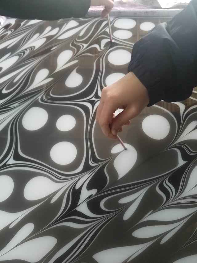 モノトーンの「墨流し染」(マーブル染め)