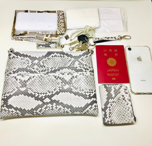 形状デザインは、横型のパイソンポーチと縦型のパイソンサコッシュ
