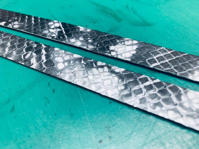 画像は、クロコダイル皮革に絞りを入れている工程になります。
