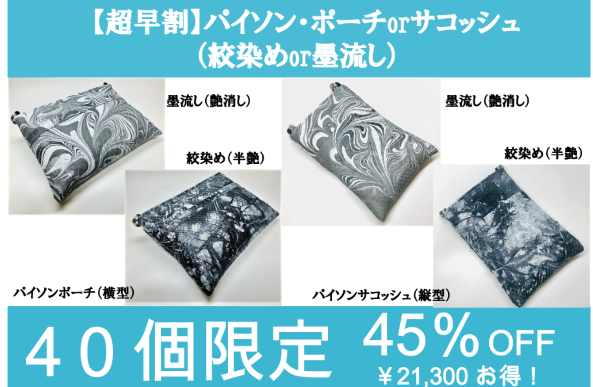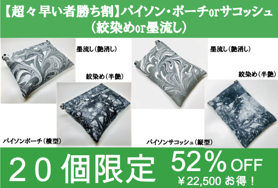 ポーチ(横型)orサコッシュ(縦型)の絞染め又は墨流し染 どちらかフルセット1式