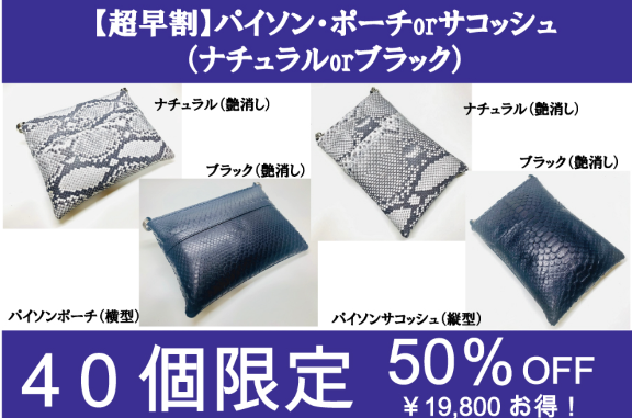 【超早割】パイソン・ポーチorサコッシュ(ナチュラルorブラック)