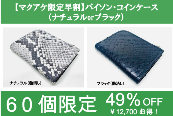 【マクアケ限定早割】パイソン・コインケース(ナチュラルorブラック)