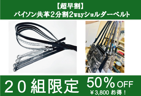 【超早割】パイソン共革2分割2wayショルダーベルト 50%OFF