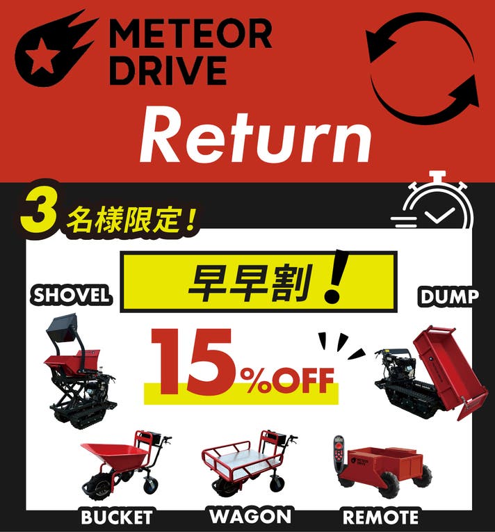 農業や建設、除雪や資材搬送など、多くの現場で「もう人力には戻れない」と感じていただけるよう、プロジェクト限定価格でお届けします。